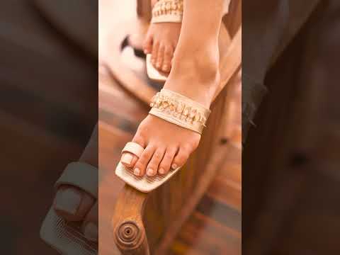 Save 50%Women leather summer flats in beige colour with toe strap & black chain in white colour by JULKEWomen leather summer flats in beige colour with toe strap & black chain in white colour by JULKE